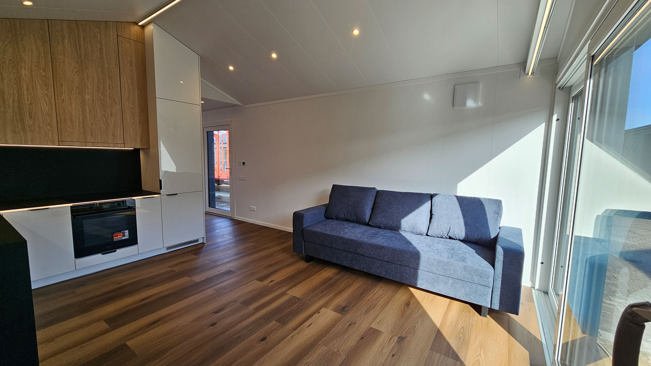 Das Mobilheim Ascona ist eine kluge Investition in ein selbstbestimmtes Leben. Es kombiniert die Vorzüge der modularen Bauweise mit der Substanz eines Massivhauses. Nachhaltig, barrierefrei und sofort bewohnbar – ein Zuhause, das Freiheit schenkt und Sicherheit bietet.