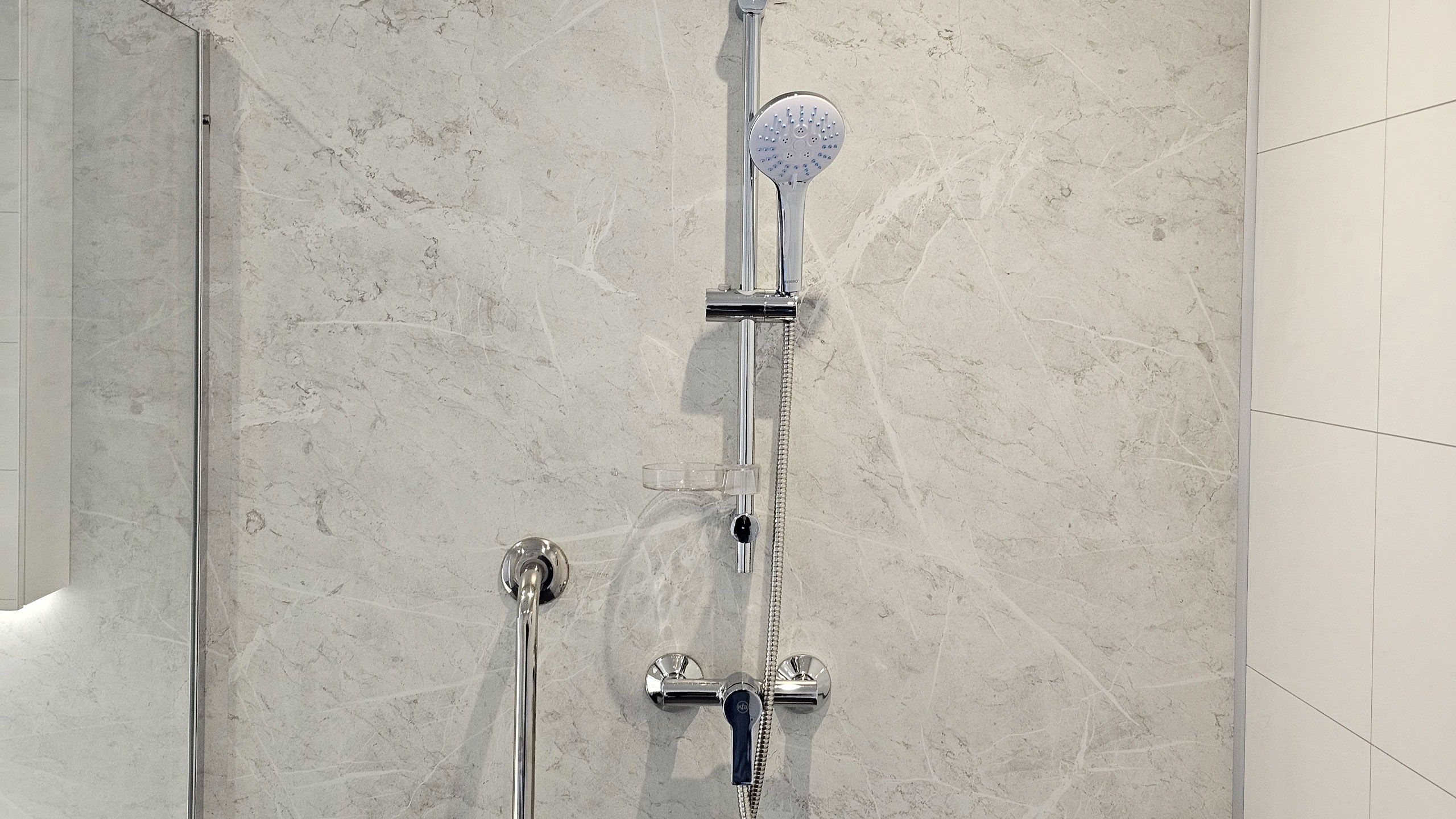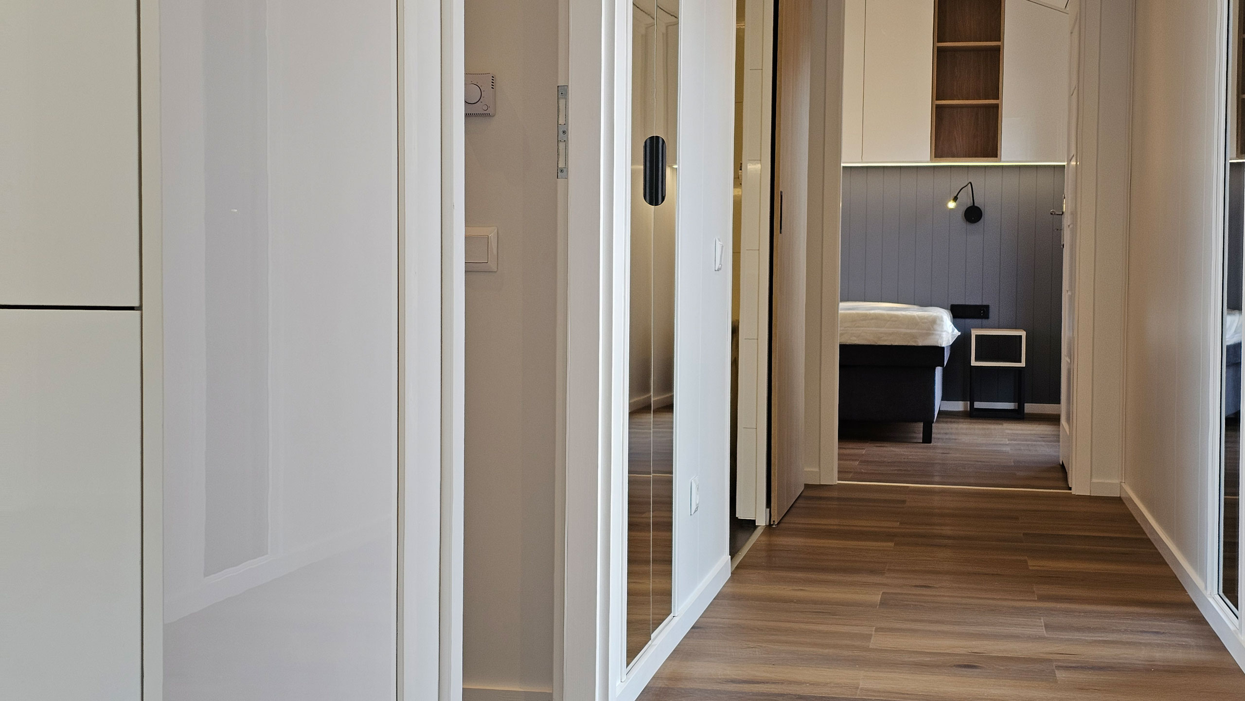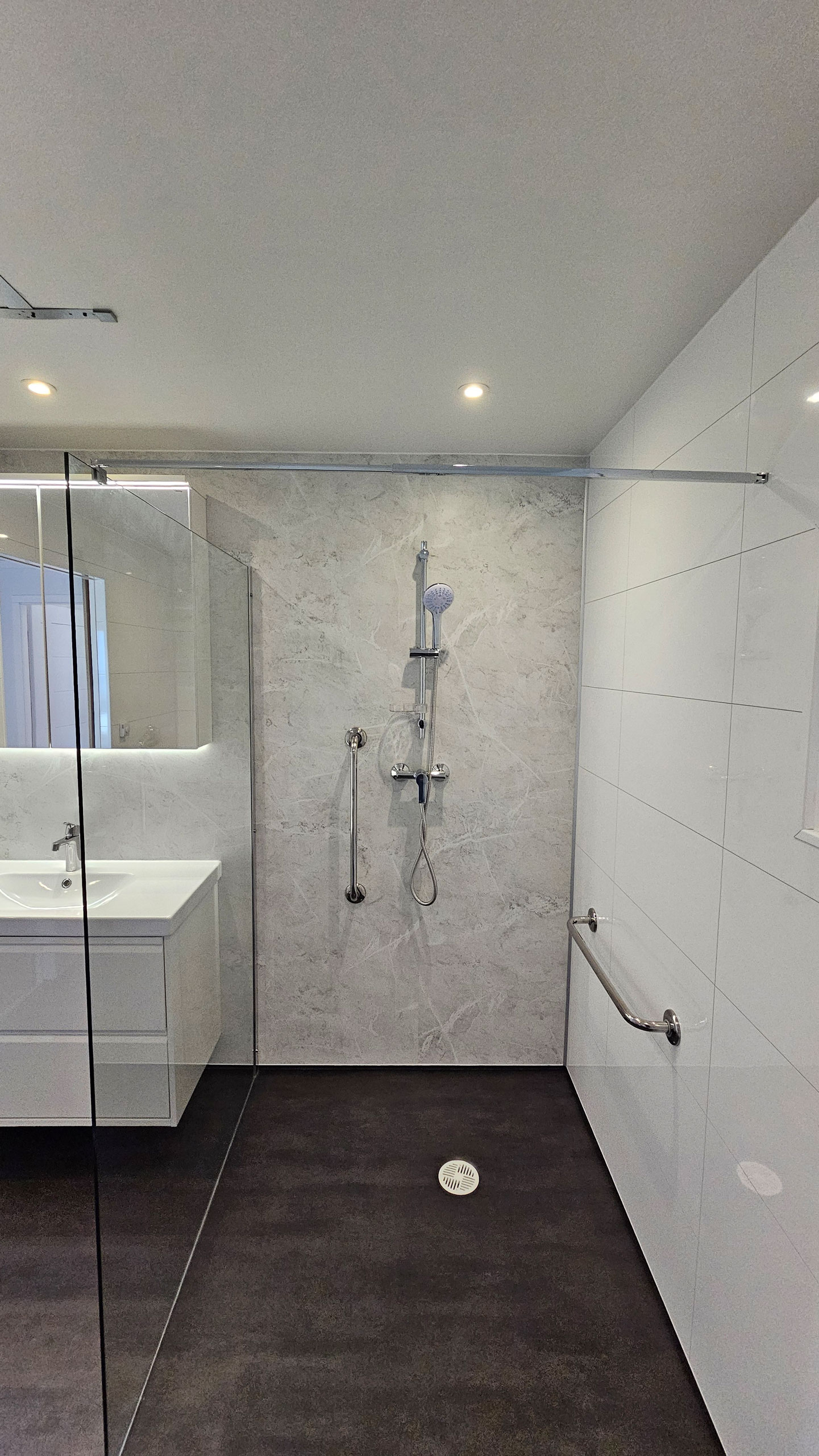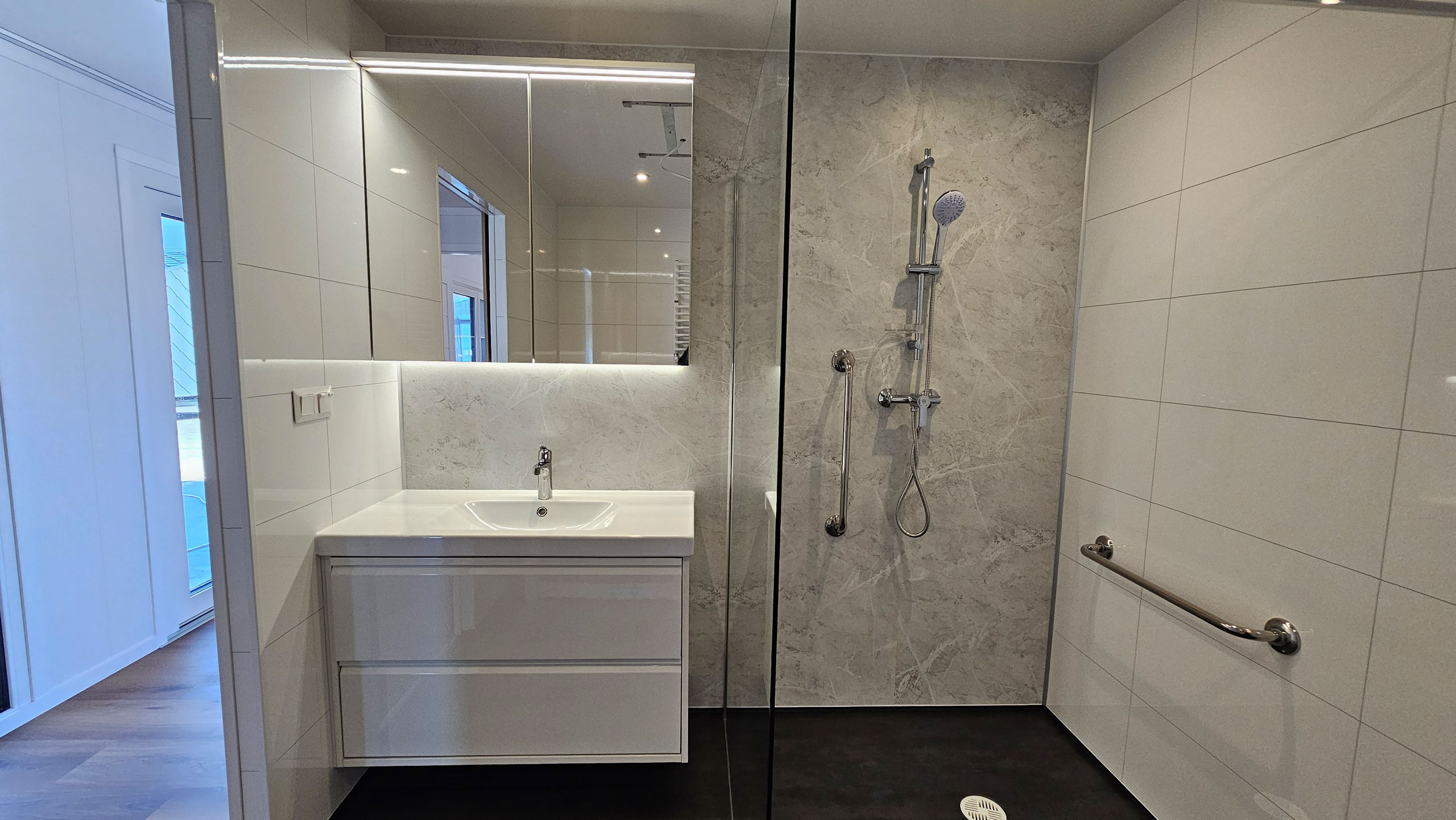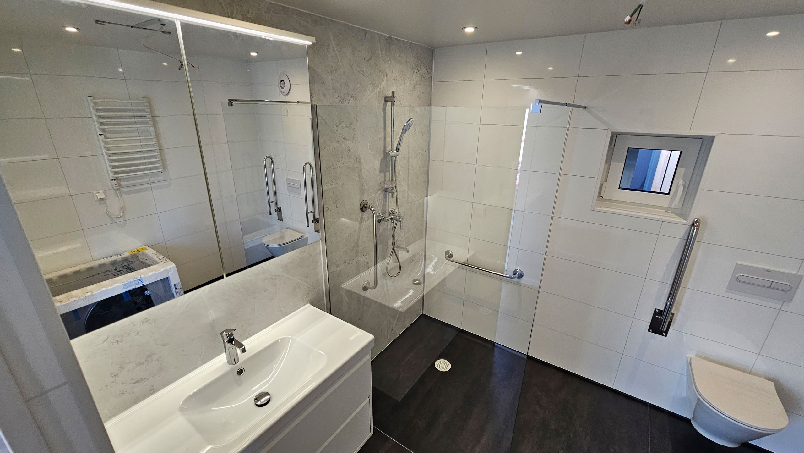 Das Schlafzimmer bietet mit einem 180×200 cm großen Bett und einem deckenhohen Schiebetürenschrank enormen Stauraum, ohne den Raum einzuengen. Das Badezimmer ist als großzügiges Komfort-Bad gestaltet: Eine bodengleiche 120×120 cm Walk-in-Dusche und eine Infrarot-Deckenheizung garantieren Sicherheit und ein angenehmes Wohlbefinden zu jeder Zeit.