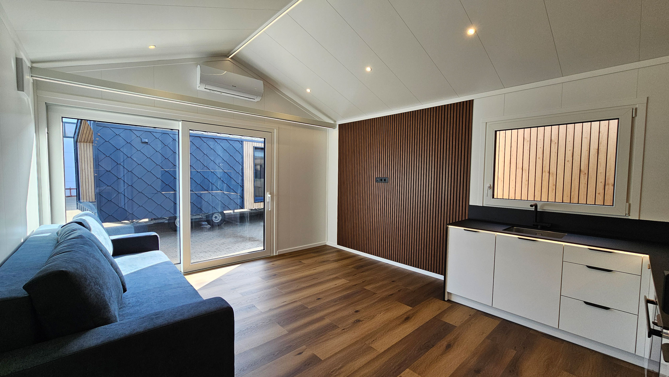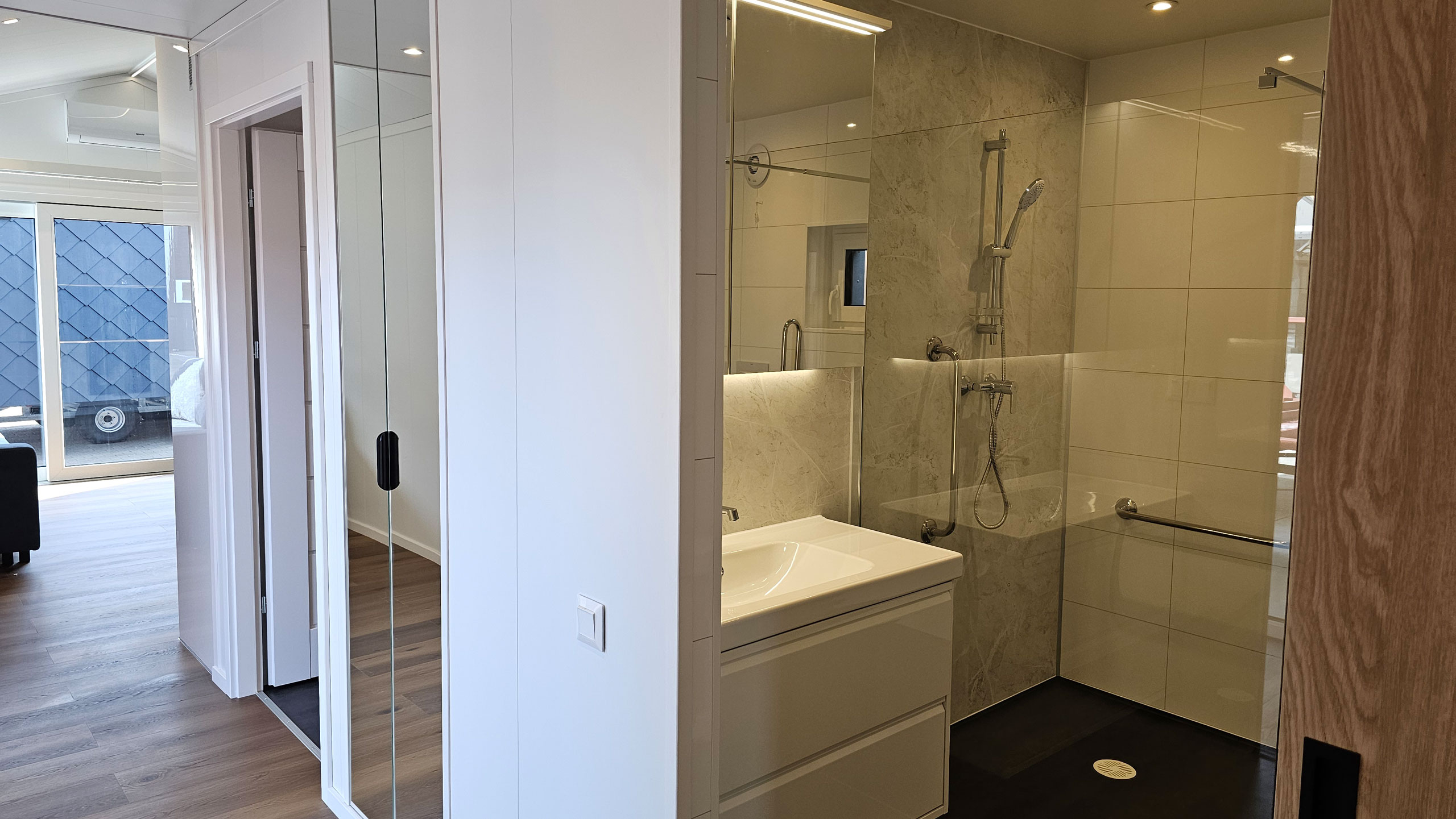 Das Ascona wird vollständig ausgestattet und bezugsfertig geliefert. Alle Installationen, von der 3-Phasen-Elektrik bis hin zu den vorbereiteten Medienanschlüssen (TV/LAN), sind bereits fachmännisch ausgeführt. Der Preis umfasst das fertige Haus sowie die Logistik bis zu Ihrem Grundstück. Die fachgerechte Aufstellung und Nivellierung vor Ort planen wir individuell mit Ihnen, passend zu den Gegebenheiten Ihrer Zufahrt.
