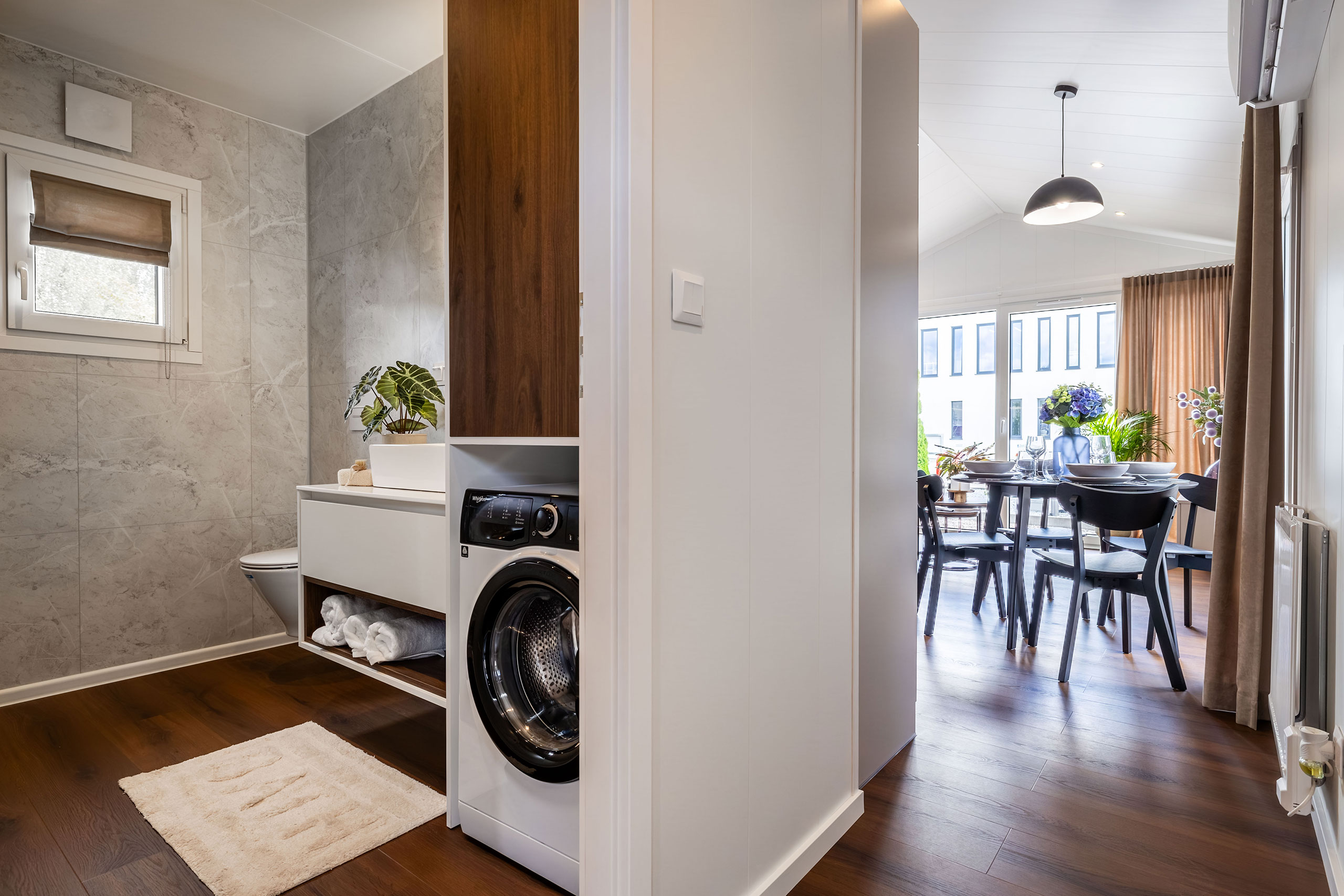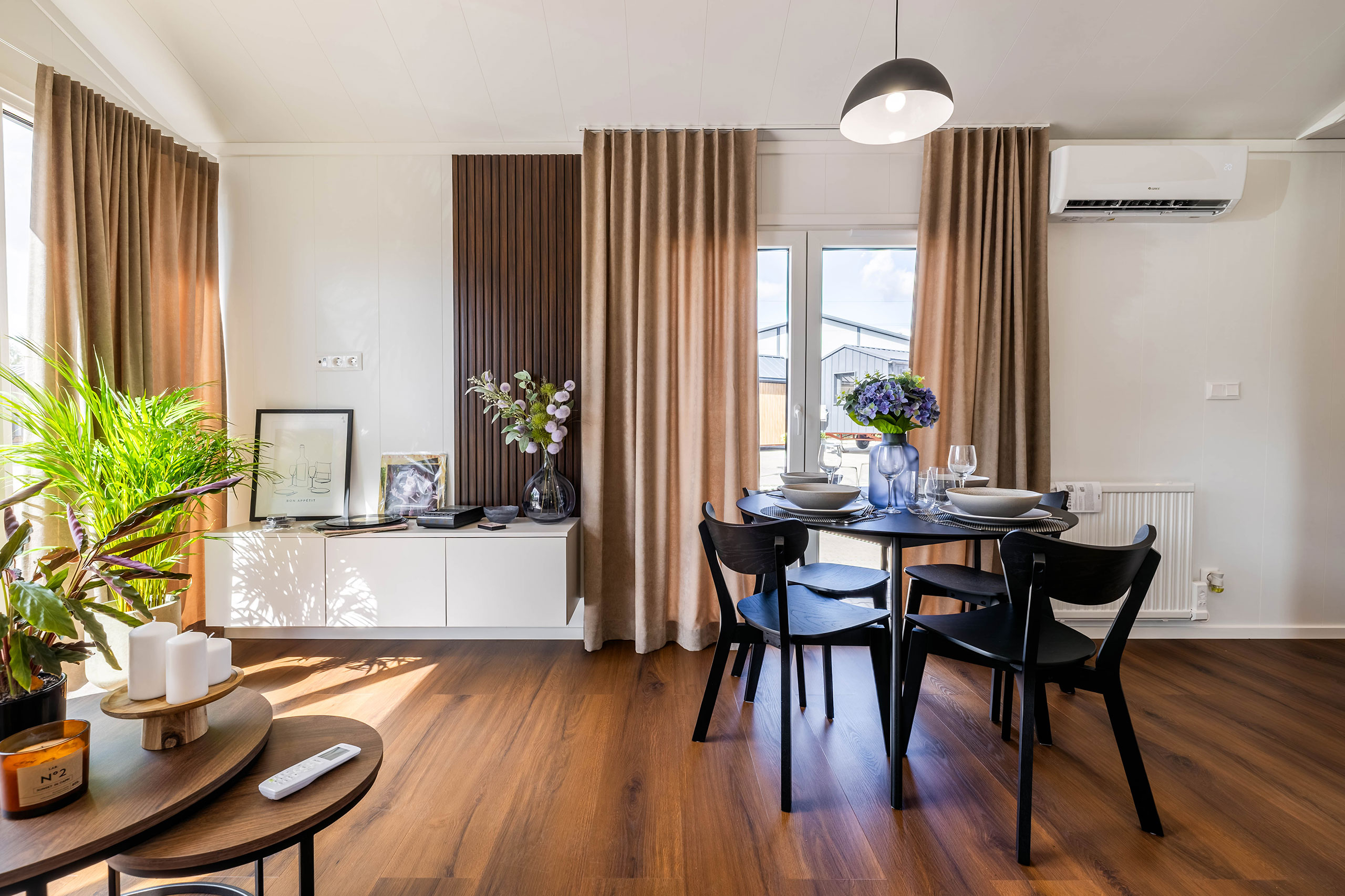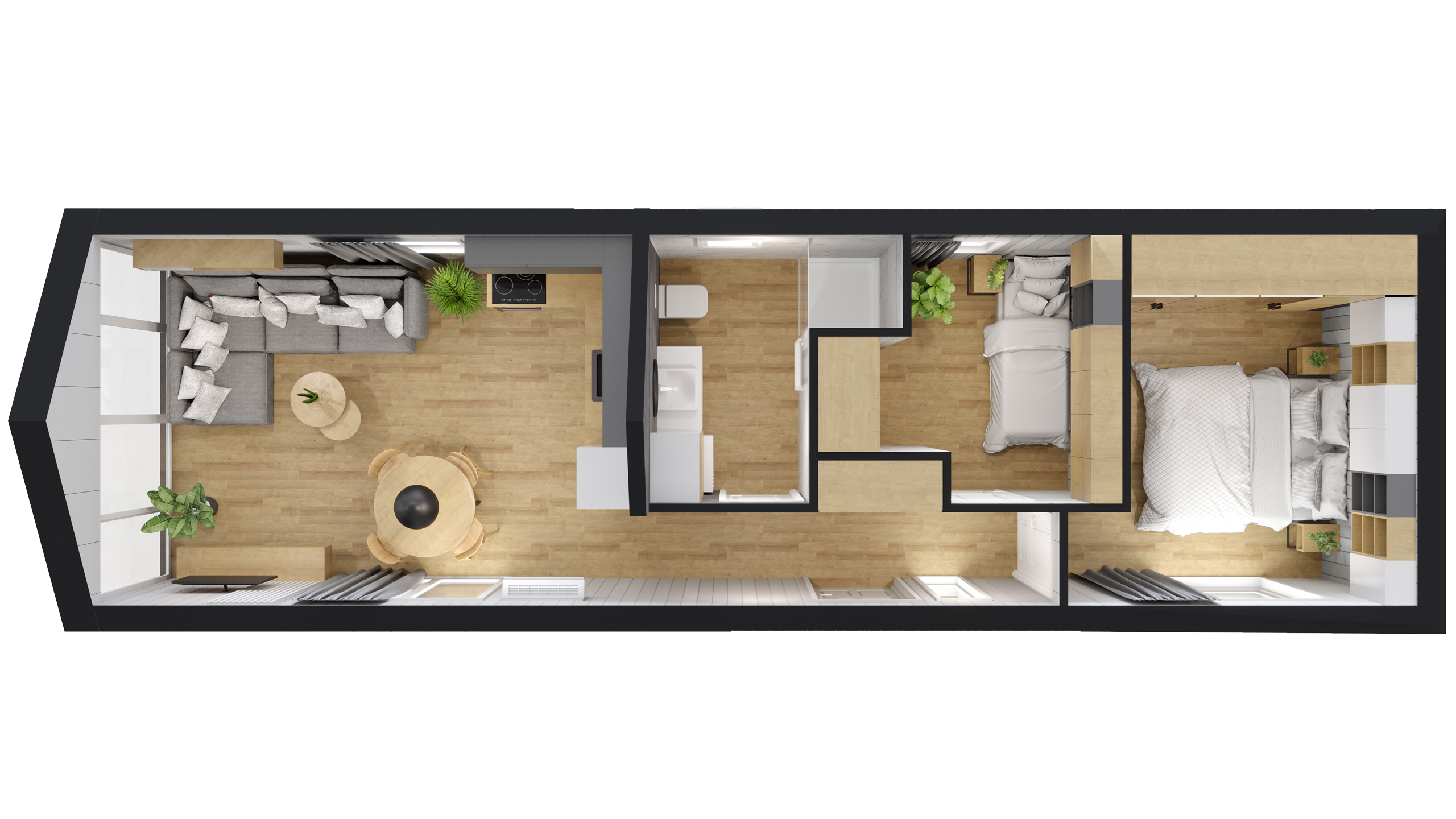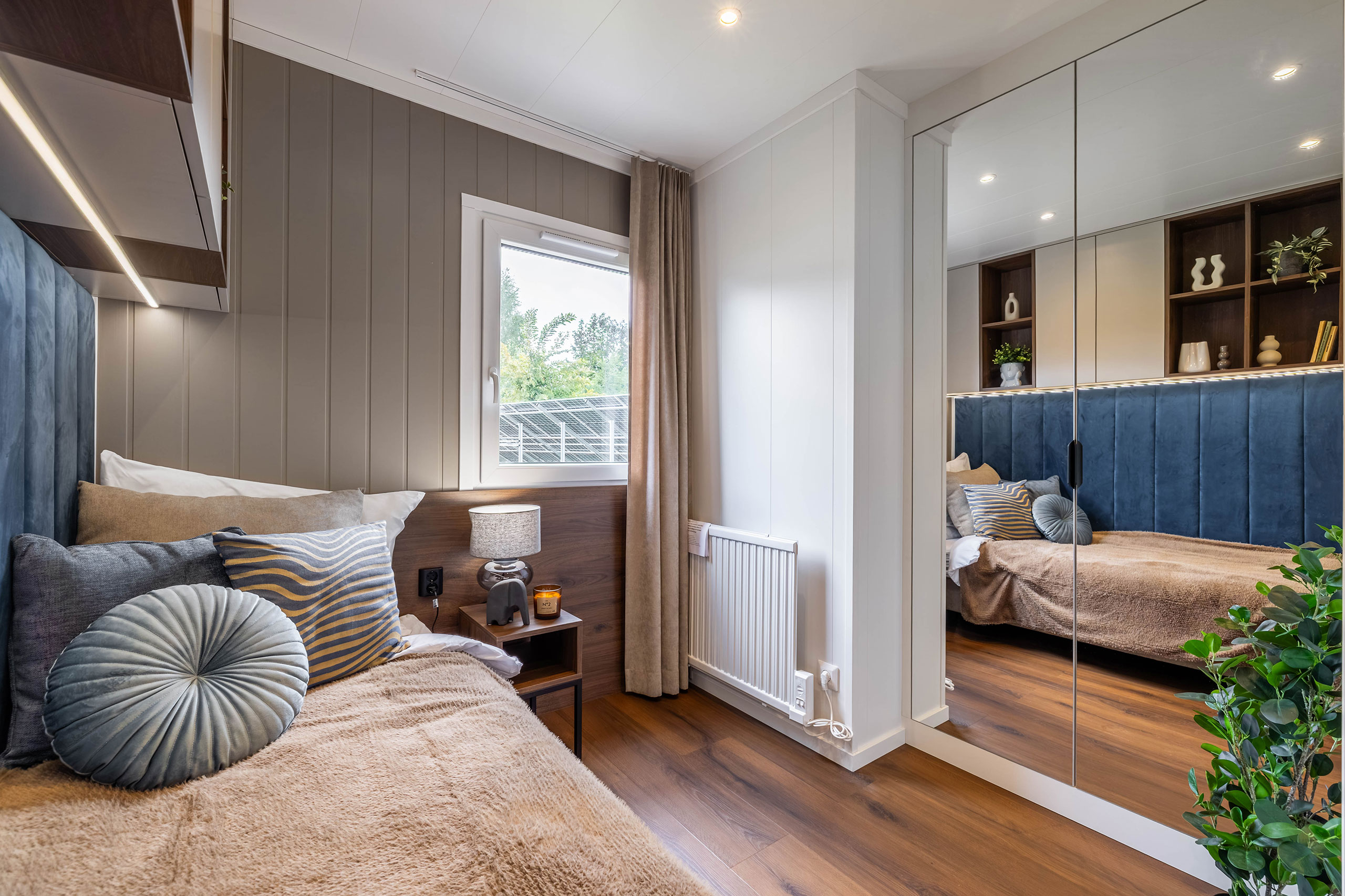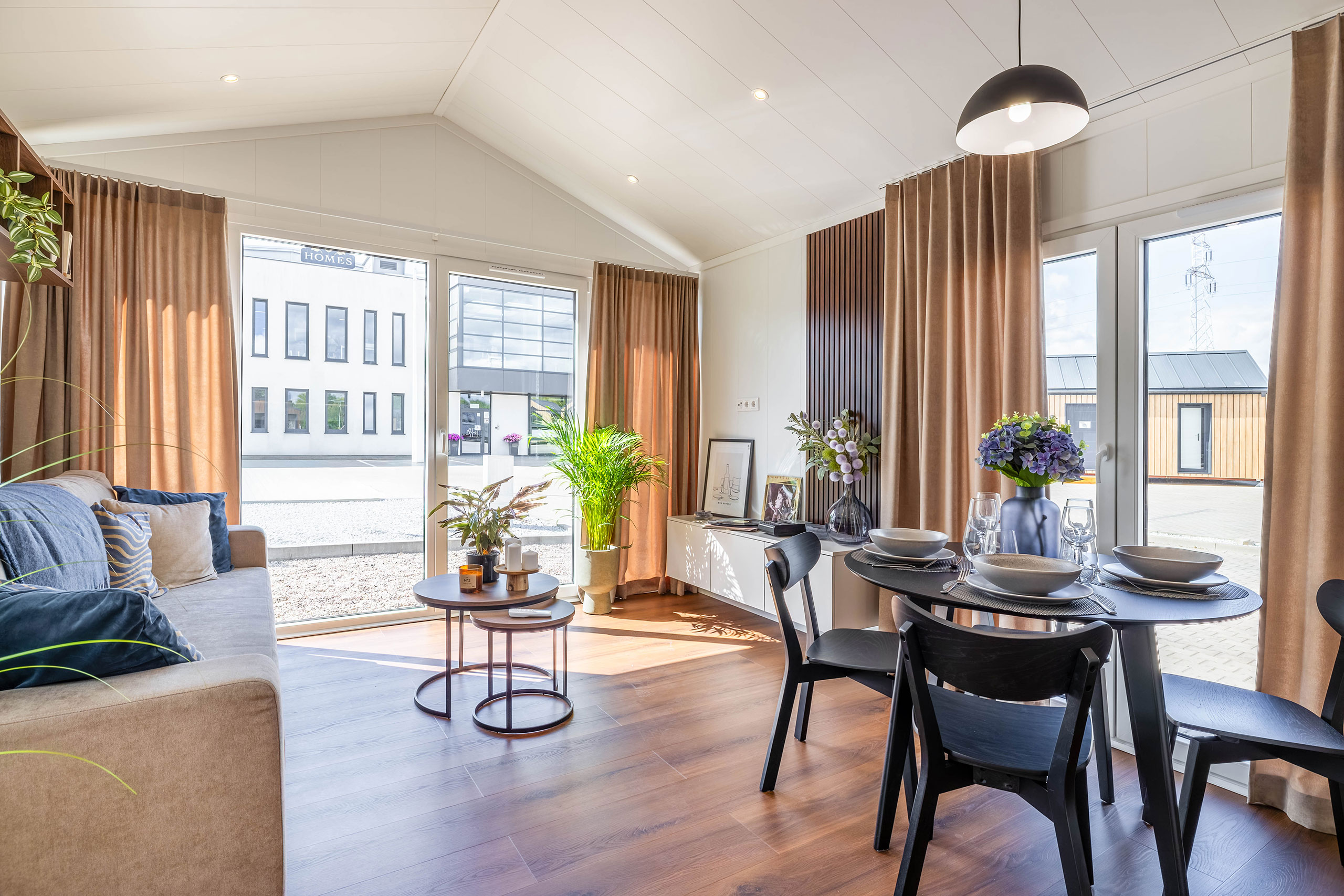 Das Modell Elba FF setzt neue Maßstäbe in Sachen Raumhöhe und Design. Durch die spezielle Flat-Floor-Bauweise ohne sichtbare Räder und die markante Dachneigung von 30° entsteht ein Innenraumvolumen, das klassischen Ferienhäusern in nichts nachsteht. Auf 55 m² bietet Elba eine luxuriöse Ausstattung, die perfekt für die ganzjährige Nutzung optimiert ist.