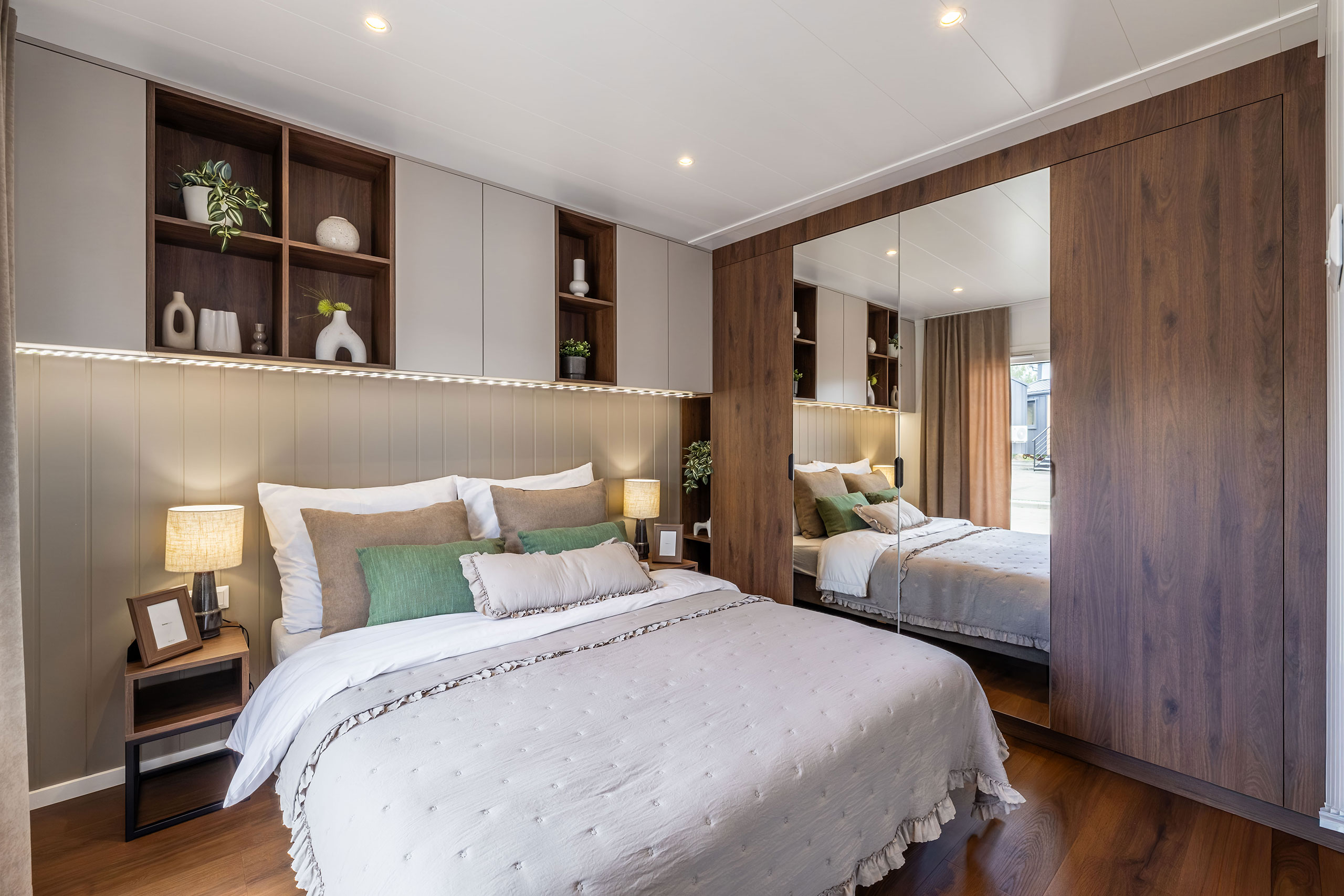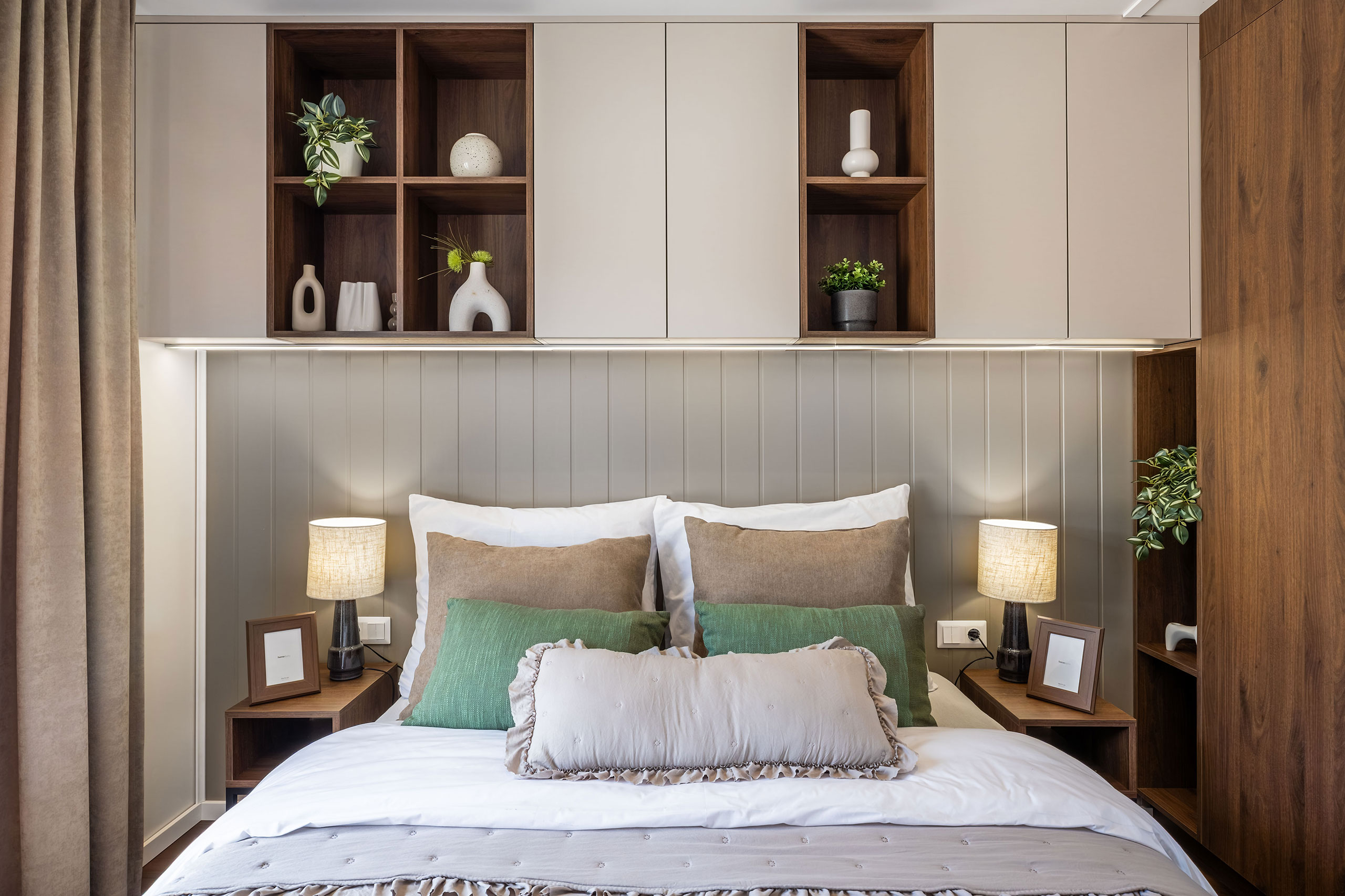 • Zusätzlicher Stauraum: Maßgefertigte Hängeschränke im Master-Bedroom direkt über dem Bett – ideal für Kleidung und persönliche Gegenstände, ohne wertvolle Bodenfläche zu verlieren.